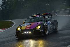 Maneuvering the Porsche along the Nordschleife like this was some very heavy lifting!“ Ever the professional, Kaufmann still kept wringing the big Porsche's neck, and in a joint effort, the team pushed its way back toward the top 50 places during the morning hours. And still, Lady Luck did not smile their way; when the paddle shift mechanism on the steering wheel refused to play any further part in the proceedings, the drivers had to resort to the old-fashioned, floor-mounted lever to change gears.