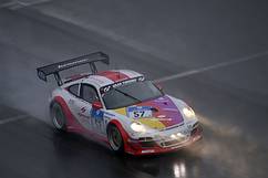 Team Porsche Kremer Racing therefore focussed on the race itself, with Kaufmann taking the start. „After the formation lap, I was able to turn six clean and quick laps“, the professional racer from Molsberg says about the early stages of the Eifel marathon. He was scheduled to do an additional lap on the 25km circuit; but dark clouds over parts of the track, and many years of Nordschleife experience, made him decide otherwise. „I came back to the pits a lap early, and together with the team decided to change to rain tyres“, he recalls. With the Grand Prix track and many other sections of the track known as „Green Hell“ still bathed in sunshine, that was not an easy call to make.