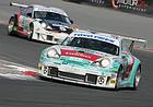 Wolfgang in Führung liegend vor dem Oktanoas Porsche mit Uwe Alzen am Steuer...