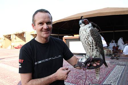 Wolfgang hält selbst einen der wertvollen Falken der Scheichs in den Händen