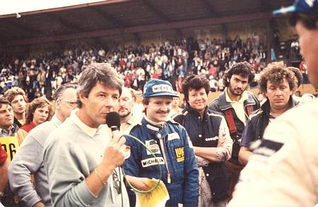 1985 Deutsche Formel 3 Meisterschaft Avus Berlin, Rainer Braun im Interview mit Wolfgang Kaufmann