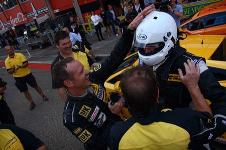 Wolfgang gratuliert seinem Teamkollegen Alexander van der Lof - Zolder 2007
