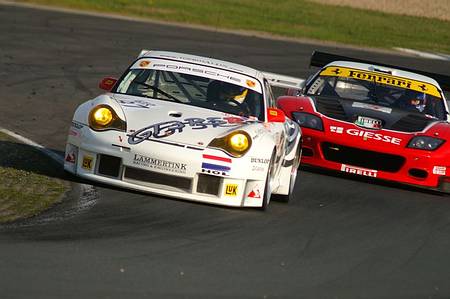 Wolfgang Kaufmann verfolgt vom JMB Ferrari 575. Oschersleben 2005