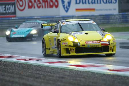 Porsche GT 3 RS, Team Renauer Motorsport, unterwegs auf regennasser Strecke während des Qualifyings in Monza