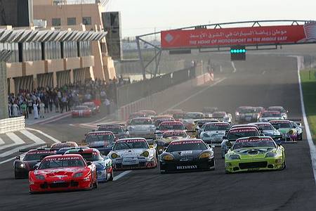 3-2-1 ... GO! Start ist freigegeben ... Wolfgang Kaufmann auf dem besten Weg das erste GT Rennen auf der neuen F1 Rennstrecke von Bahrain zu gewinnen ...