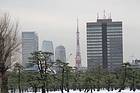 ... Schnee in Tokio, im Hintergrund der 1957 errichtete japanische Eifelturm Tokio Tower mit einer Höhe von 333 Meter