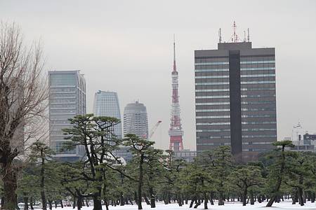 ... Schnee in Tokio, im Hintergrund der 1957 errichtete japanische Eifelturm Tokio Tower mit einer Höhe von 333 Meter