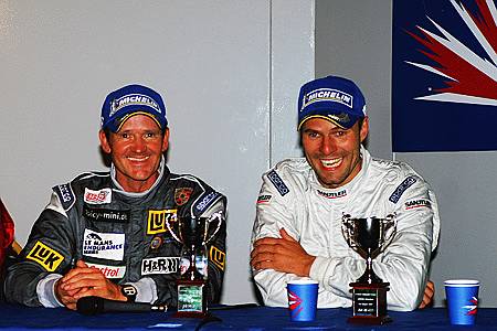Wolfgang Kaufmann und Marcel Tiemann bei der Pressekonferenz in Silverstone 2005.
