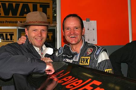 ... ein starkes Team! W. Kaufmann mit Teamkollege Eric van de Poele beim Le Mans Endurance Rennen 2004 auf dem Nürburgring
