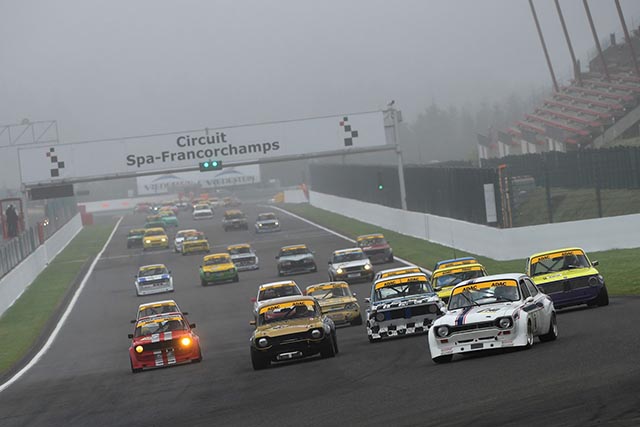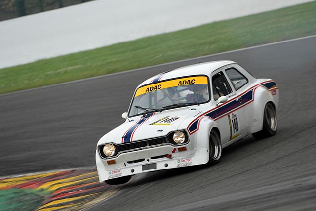 Was wäre besser geeignet, ein dermaßen frustbeladenes Wochenende zu vergessen, als ein Rennerfolg? Und der sollte sich eindrucksvoller einstellen als erhofft. Zum Youngtimer Festival im belgischen Spa-Francorchamps nahm Wolfgang Kaufmann wieder im Ford Escort RS 1600 von Dieter Dörmann Platz. Das Zeittraining auf dem anspruchsvollen und schnellen sieben Kilometer langen Kurs in den Ardennen dominierte „Piranha“ nach Belieben. Mit einer schnellsten Rundenzeit von 2.46,829 Minuten stellte Kaufmann den „Hundeknochen“ Escort auf die Pole Position.