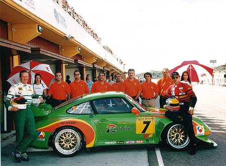 2001 Spanische GT Meisterschaft. Teamfoto Paco Orti Racing in der Boxengasse des "Circuito Ricardo Tormo" Valencia