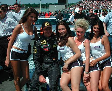 Gesamtsieger Wolfgang Kaufmann nach dem Gewinn des Sport Auto Tuner GP 2004 in netter Begleitung ...