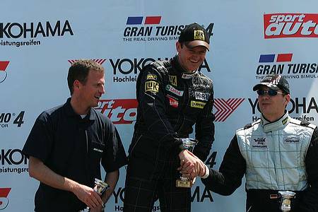 Kaufmann mit dem zweitplatzierten Frank Schmickler (links) und dem drittplatzierten Marc Basseng (rechts)