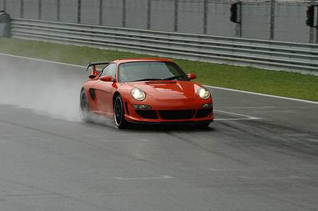 Unterwegs im Gemballa Avalanche auf regennasser Fahrbahn in Malaysia